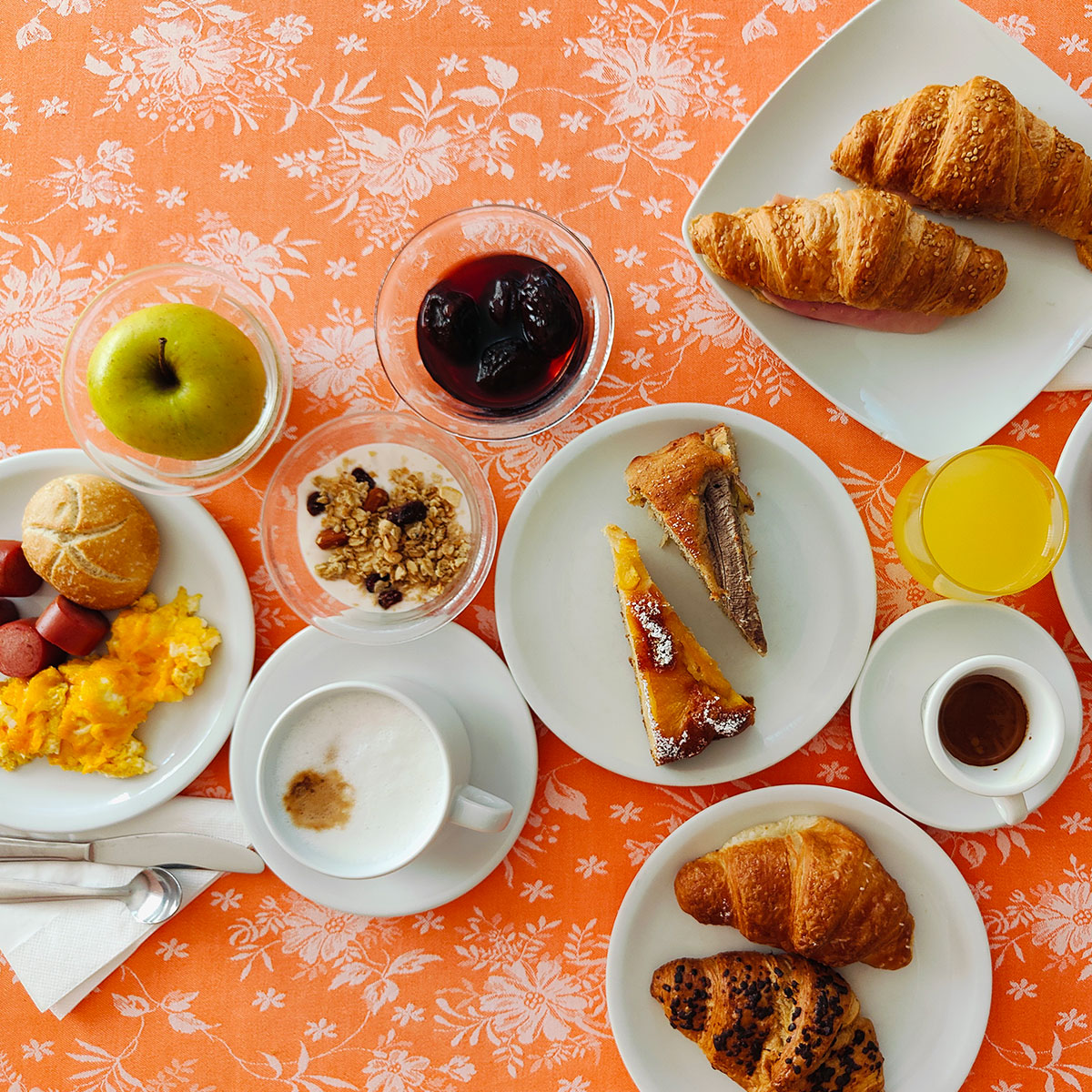 Inizia la tua giornata con torte fatte in casa, brioche calde, yogurt, muesli, corn flakes, pane e fette biscottate su cui spalmare miele, marmellate e crema di nocciole.